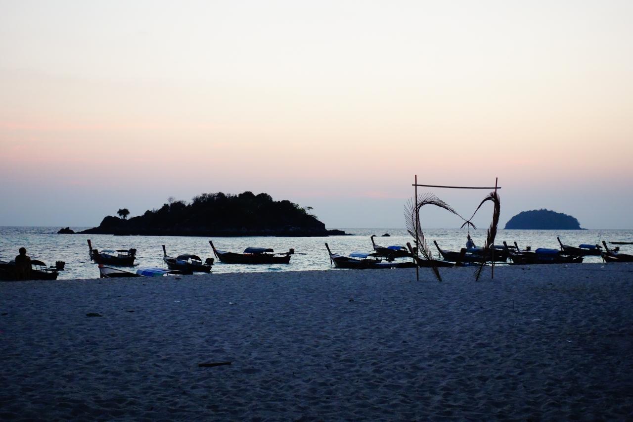 リペ島のビーチはどこもロングテールボートが停泊していて、