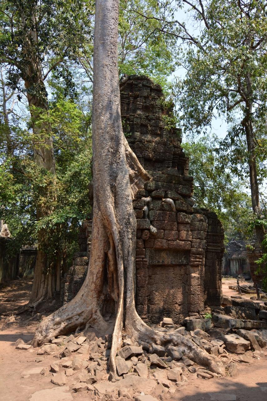 最初は仏塔よりもはるかに小さかった木が、長い年月をかけて仏塔を覆いきったことを思うと感慨深い。 -