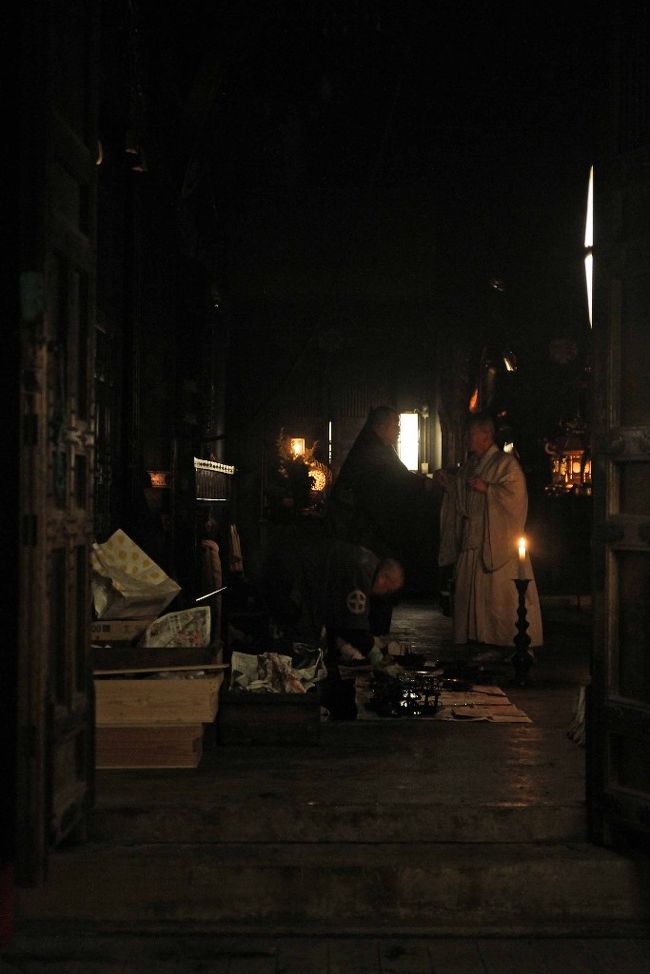 咒師と処世界が飯道社前の神供所で護法諸神を供養 残された練行衆は勧進の間で休息