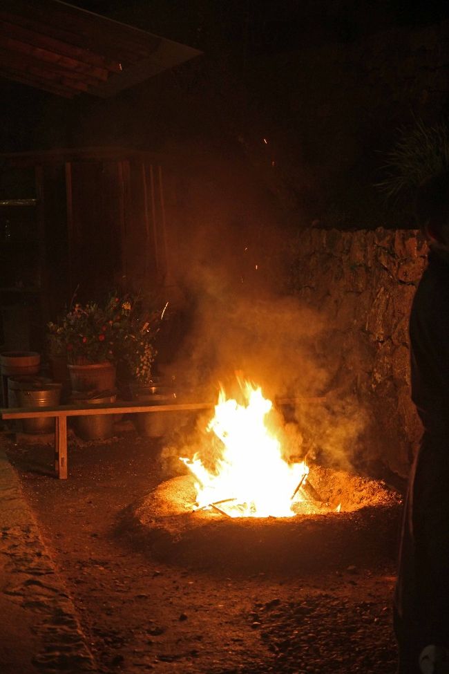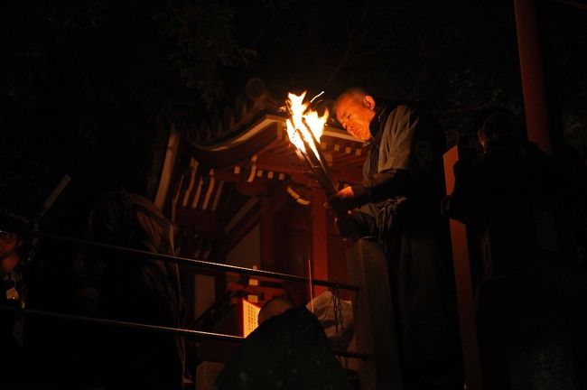 じつはここで、壮大な乞食ごっこがおこなわれる。行で使ったものが捨てられるのであるが、結界の切れ端や杖のようなもの松明の残り。観客はむさぼるように奪い合う。かく云う私も杖一本分捕る。これこれこの人が持っているただの木の棒ですが。自慢しときます。