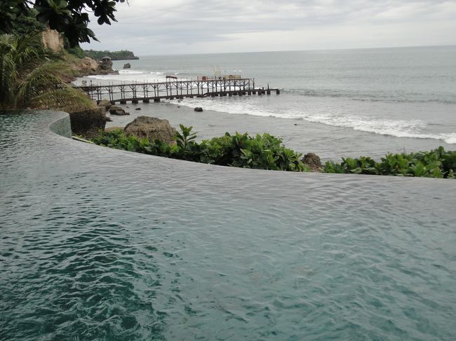 ロックバーのそばにある海に近いプール。ビーチベッドが少ないので競争率は高いです。
