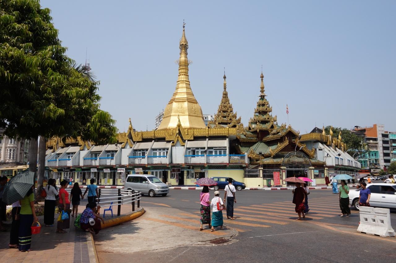 街の中心の交差点に建つスーレー・パゴダ。