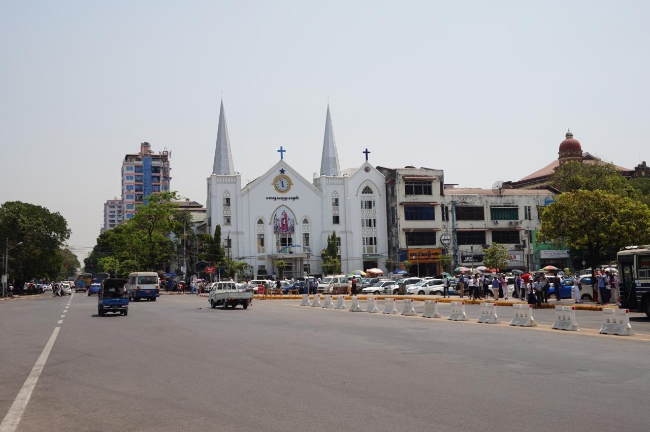 ミャンマーは、人口の9割以上が仏教徒、キリスト教徒は少数派ですがこのような立派な教会もあるのです。 -