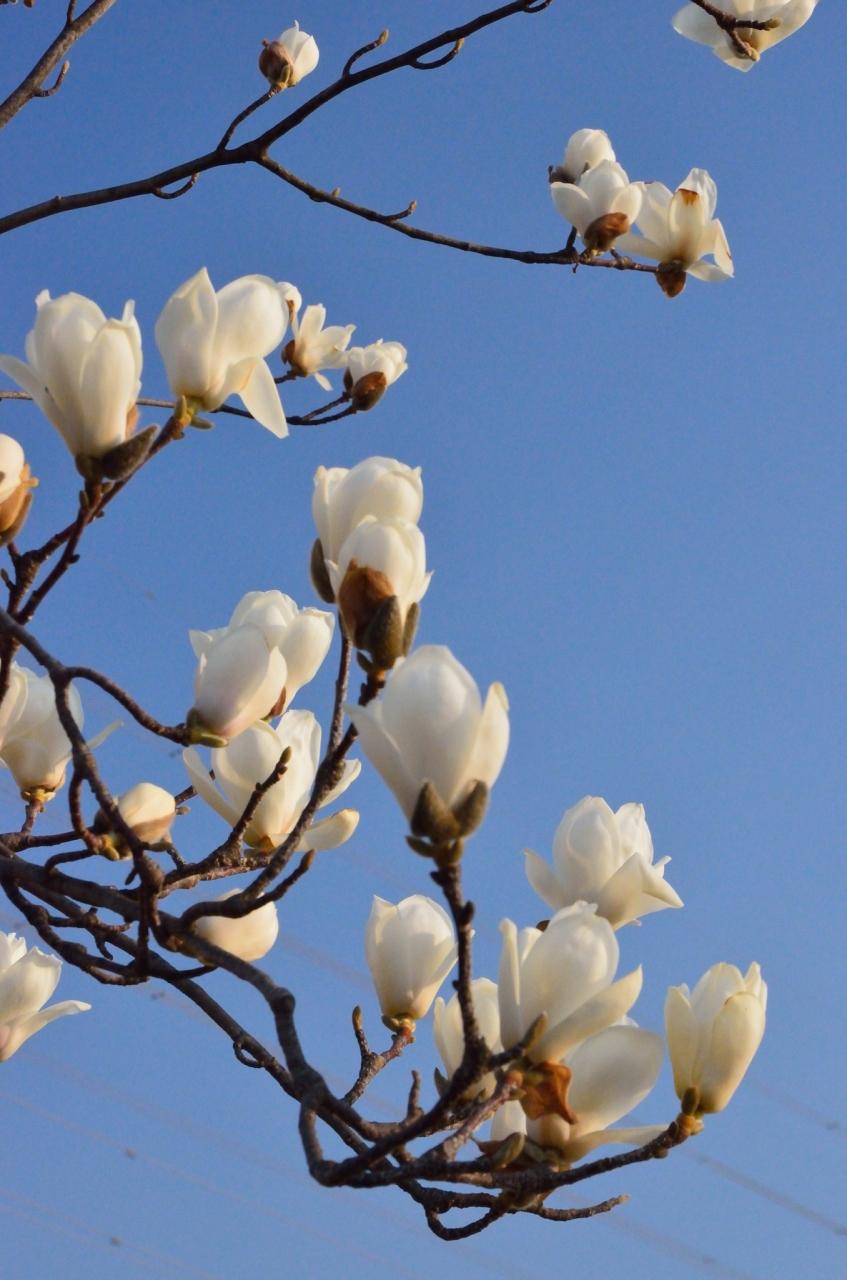 土手の上のハクモクレンも見事に咲き誇っている。