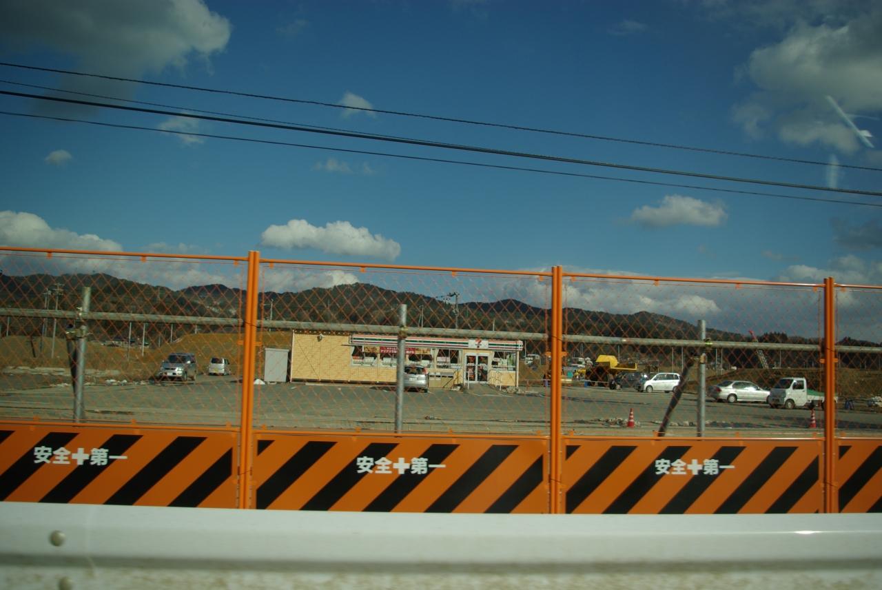 よくあるコンビニです。しかし、周りを見ると何にもありません。津波で皆、流されたのでしょう。ということは、このコンビニも破壊されたはず。瓦礫も撤去された更地にポツンとコンビニがある風景は、あちこちで見受けられました。