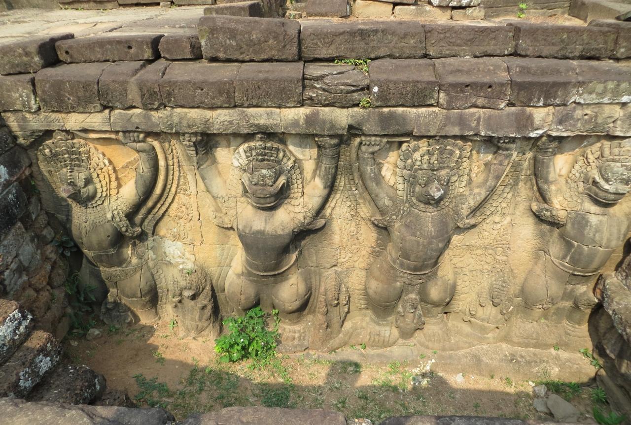『象のテラス』の壁面光景です。かなり風化した四頭のレリーフ像がありました。二頭ずつ、お互いに向かいあった姿でした。
