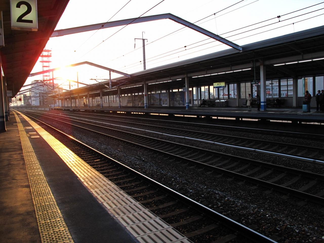 朝、6時過ぎ、福山駅の新幹線上りホームからの福山城です。