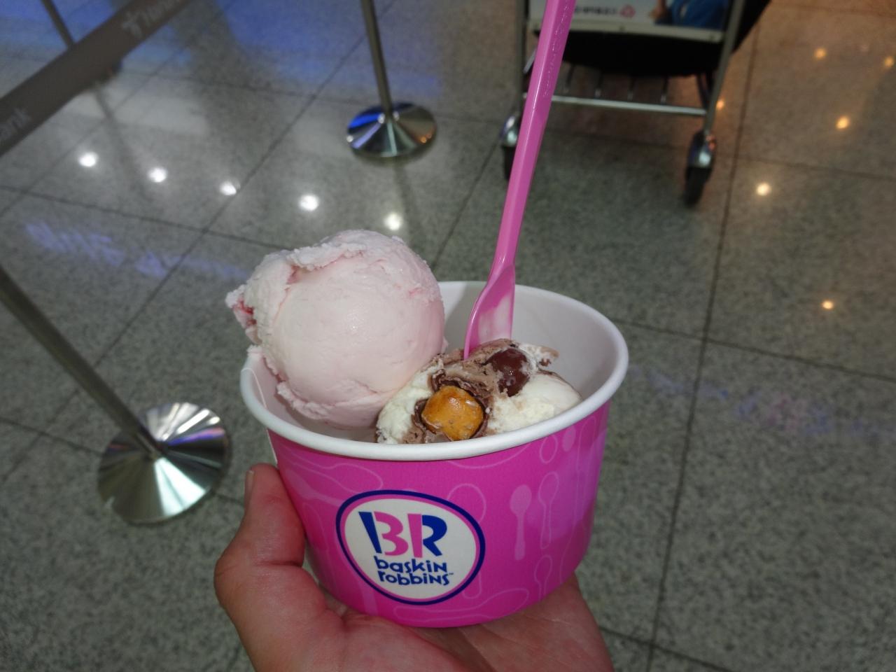 空港内は暑くて汗だくになっていたので冷たいアイスは最高です。 -