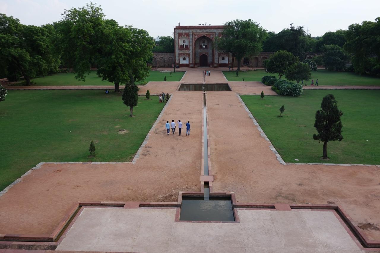 広い庭園の中に廟が設置されていて、長い距離を歩きます。イサ・カーン廟はまだまだ外縁にも当たらない場所に設置されています。門がまだまだ遠くにあります。あの門は「ブ・ハリマ門」と言って、霊廟の敷地内に入って一番目の門となります。建築そのものはフマユーン廟よりは後の16世紀後半とのこと。