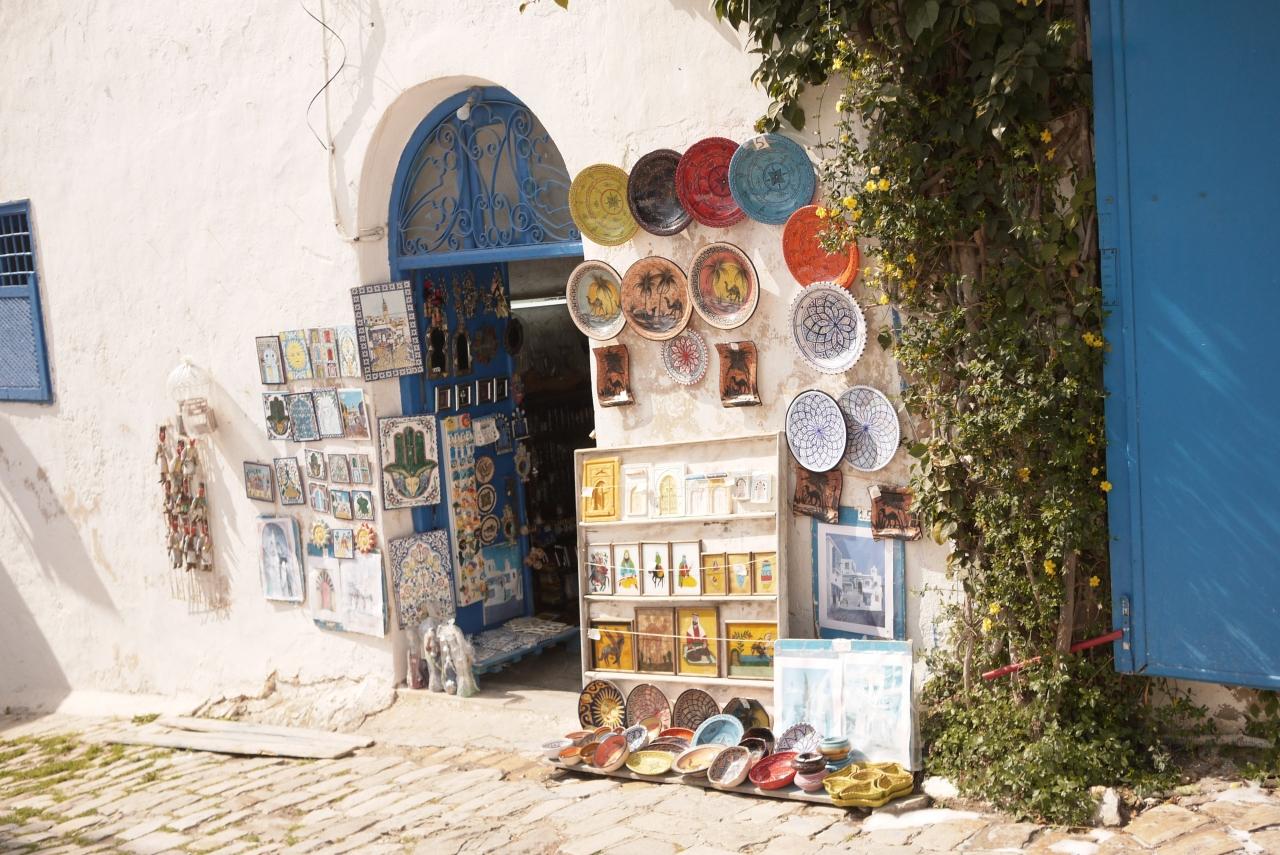 地中海の真珠、チュニジアンブルーの扉と白壁の上品なリゾート街、
