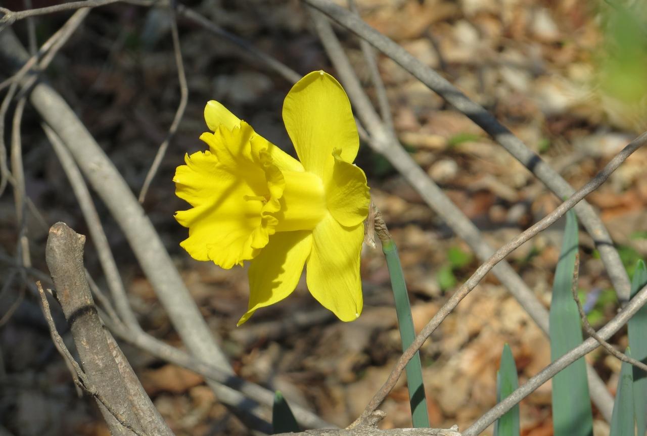 こちらも1輪だけ咲いていた黄色の水仙の花です。ヒガンバナ科の多年草、キズイセン(黄水仙)のようです。アルジェリア原産で、日本へも江戸時代に渡来しています。
