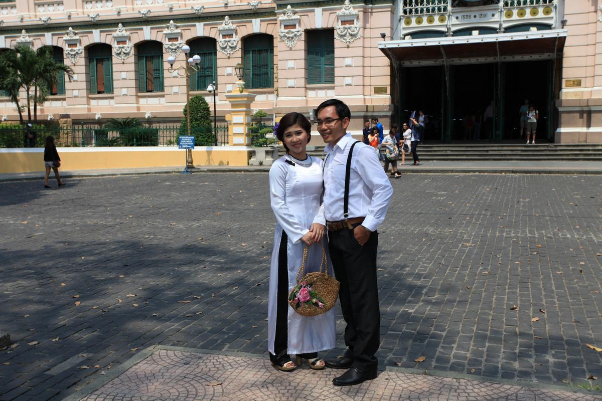 郵便局前で結婚写真の撮影をしていたお二人 -