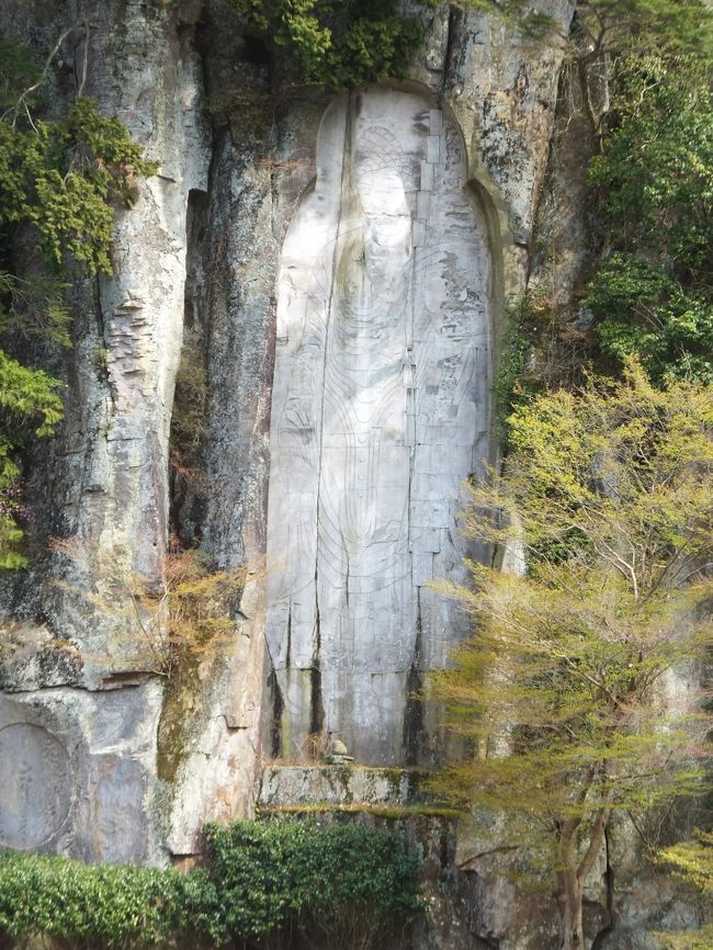 川向には岩壁に彫られた高さ11.2mの弥勒如来像磨崖仏があります。