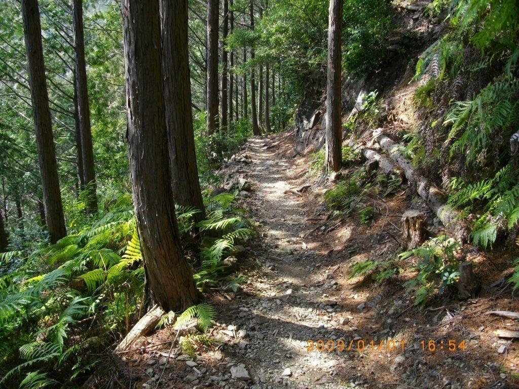 見晴し台へは登らず,世界遺産となっている古道を下ります.