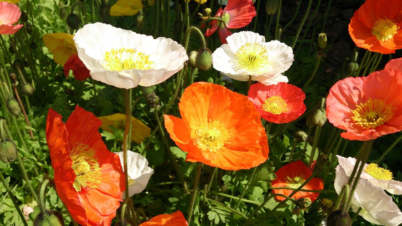 色とりどりの花がうれしい気分にさせてくれます。 -