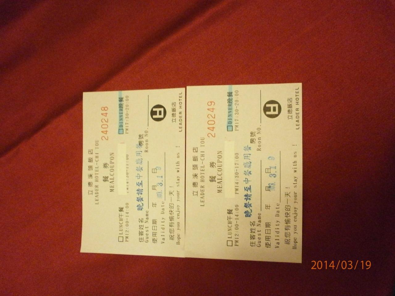 夕食用のチケットです。