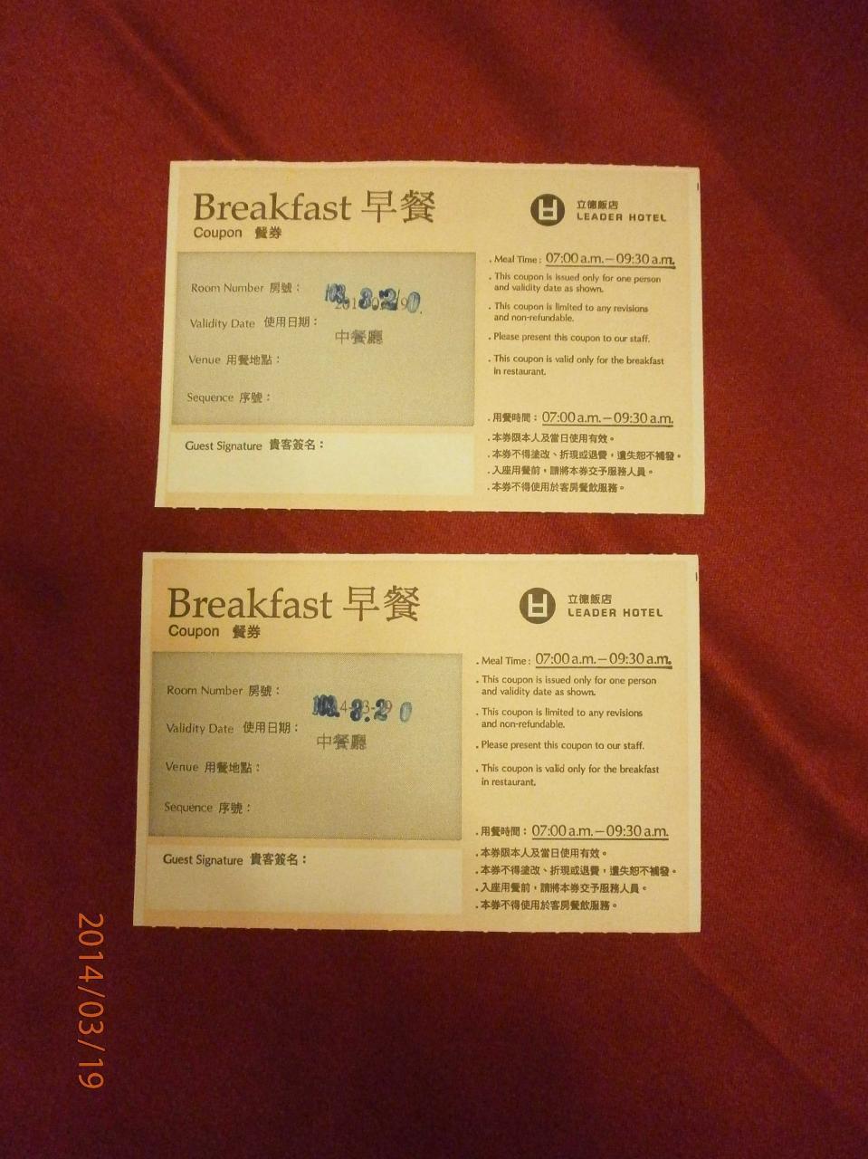 朝食用のチケットです。
