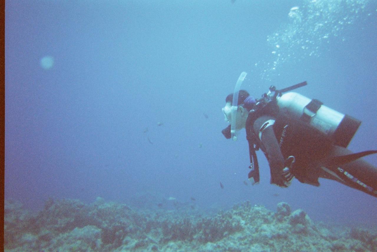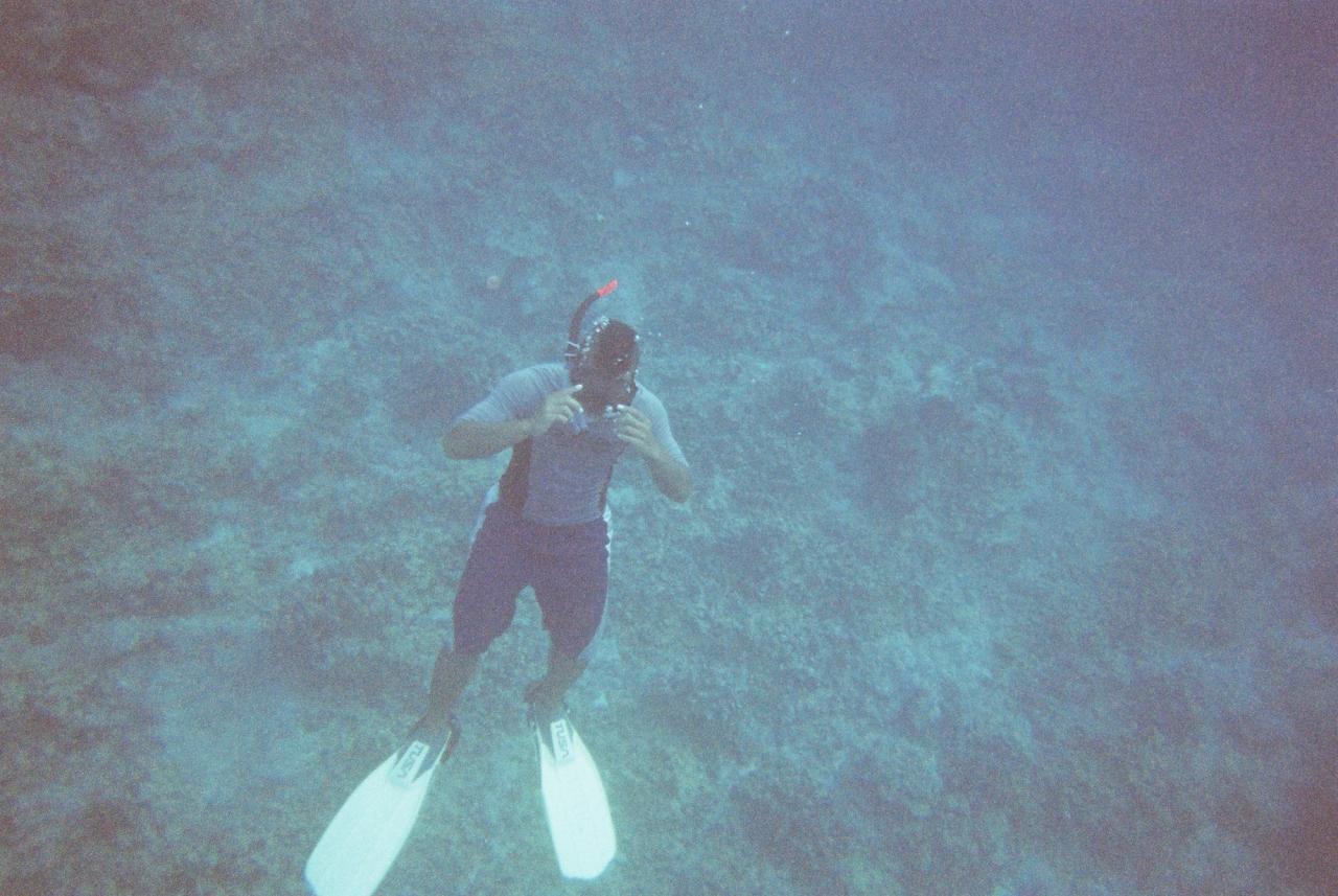 ホテルのビーチから潜って、5mくらいで水に慣れる。。水の透明度が悪くて、本当に潜る練習ってだけだった。。 -