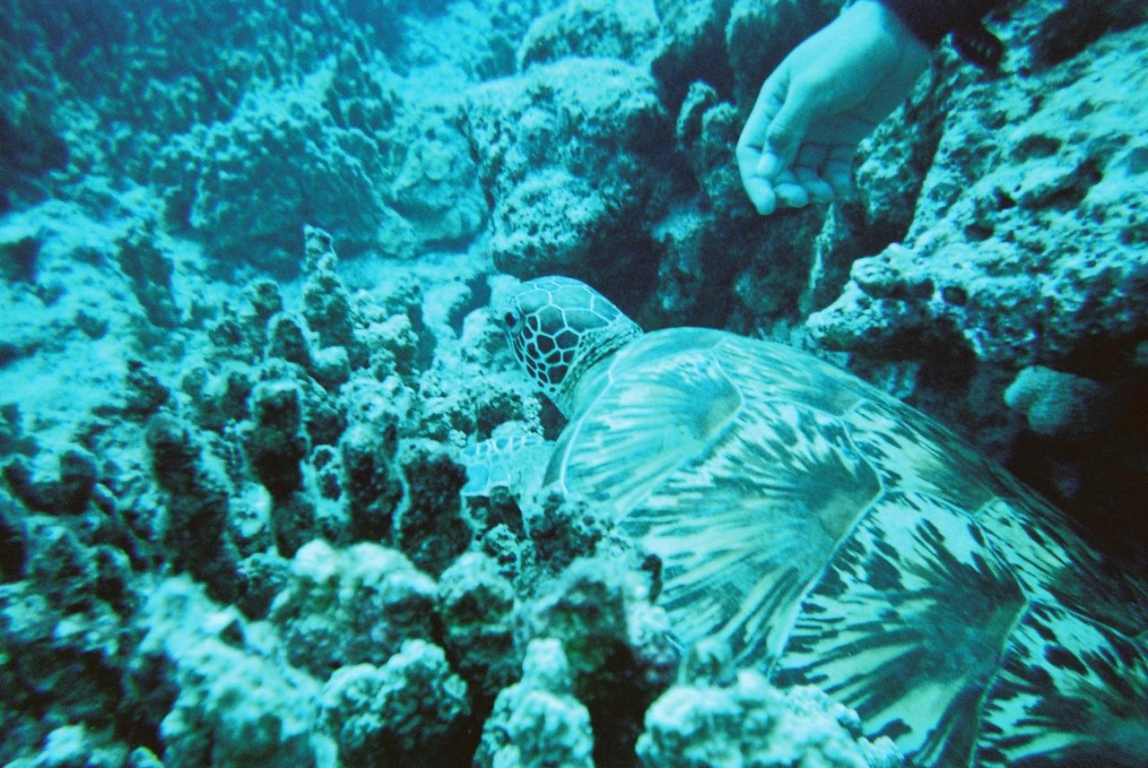 ガイドの人が5〜7m下にウミガメが岩の上で寝ている姿を発見、教えてくれた。