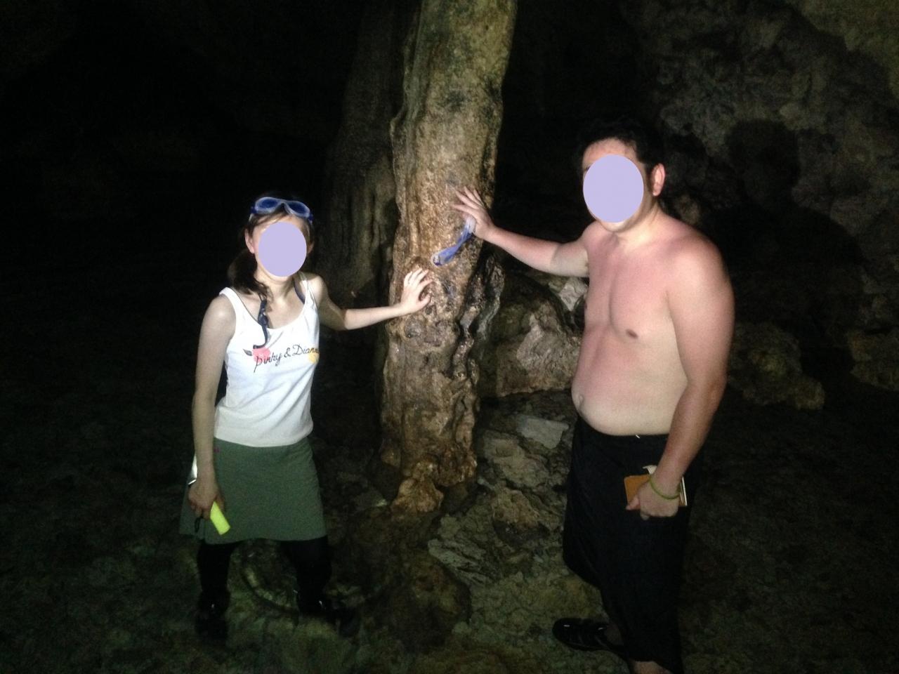 途中で岩がゴツゴツしているところを上り、洞窟(ケーブ)に到着。