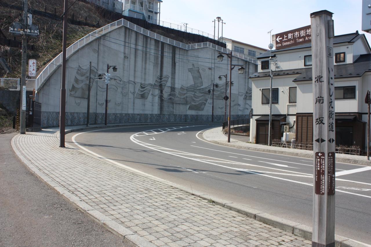 ここに江差駅の方向表示があり、ここから上がっていきました。 -
