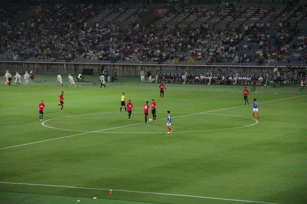 注目はもちろんマンUのスター選手達ですが、その中に唯一の日本人、香川選手の出場です。個人的には、以前香川選手が所属していたドルトムントの試合をドイツまで見に行ったのに怪我で出場できず、そのプレーを見れなかったので、今回は待ちに待った試合でした。