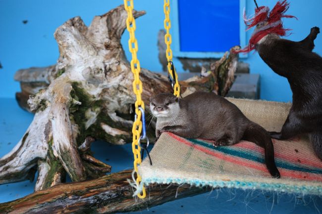 カワウソがいて、イベントで園内を飼育員さんが散歩をさせる。そして触ることも出来る。猫とはまた違った触り心地。