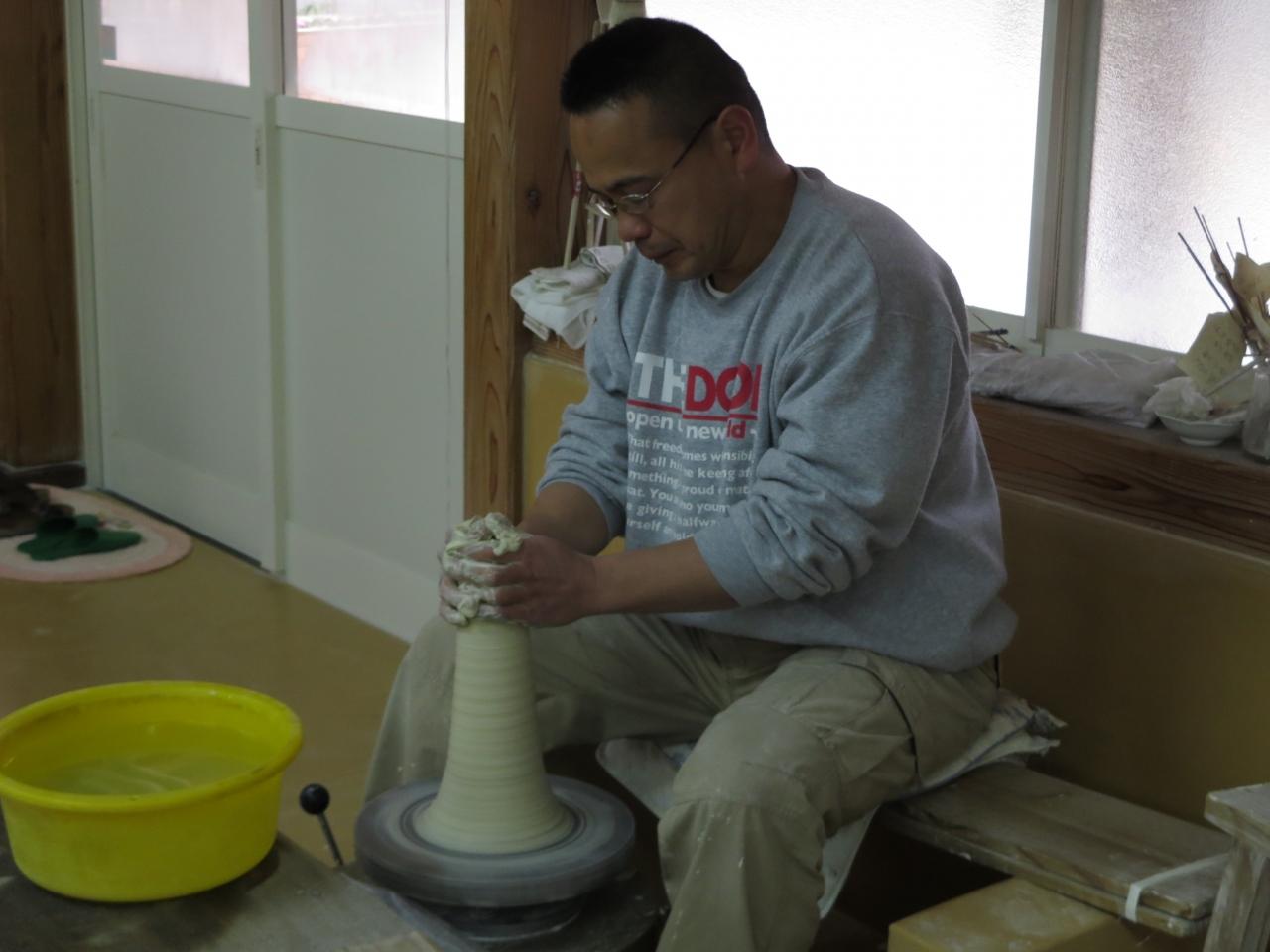 略歴などのお話を伺った後、直接指導を受けての白磁の製作体験をしました。