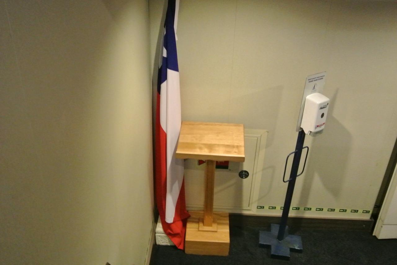 22:00 送別会での乾杯、船旗抽選会、ホーン岬実物航海図落札会 Salon Darwin 第5デッキ