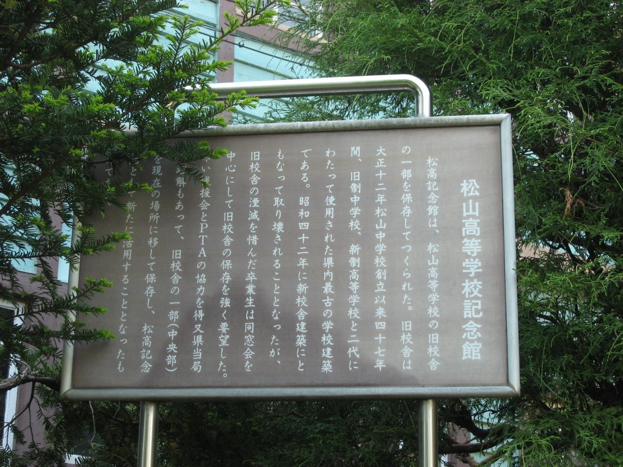 開校当時の校舎が現在の松山高校の一角に記念館として保存されています。平日は一般開放されているようです。 -