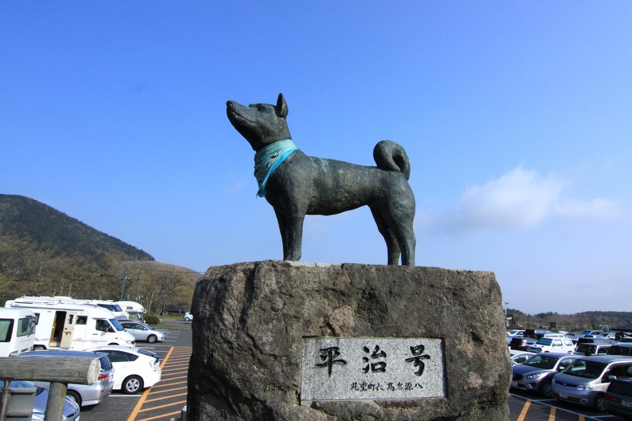 長者原ビジターセンター駐車場に建つ「平治」の像