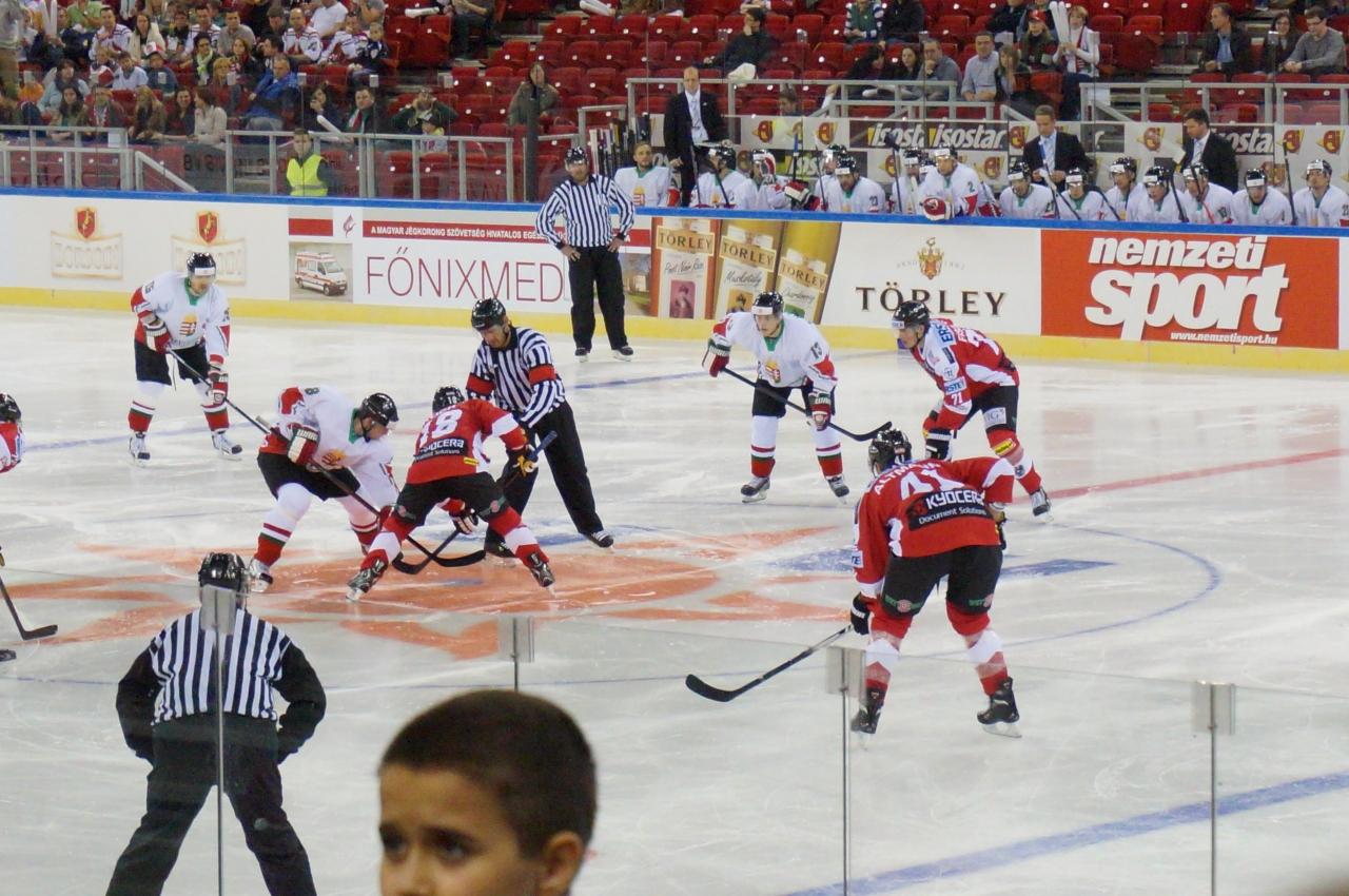 観客の何人かはアイスホッケーのユニフォームを着た人もいました。