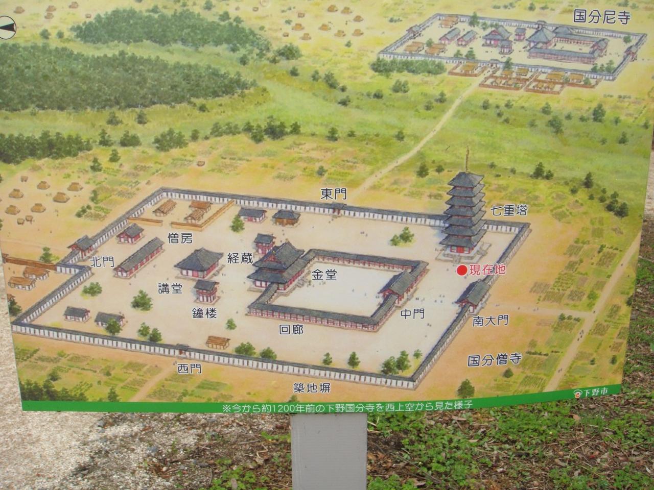 説明では『約1200年前の下野国分寺を西上空から見た様子』