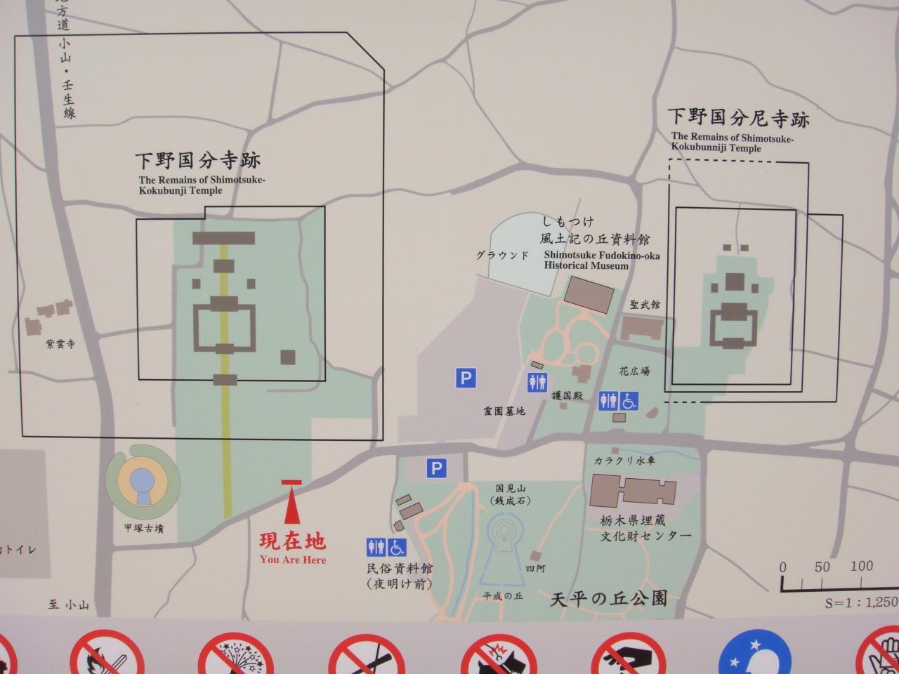 栃木県下野市には西暦700年代に建立された“国分寺(国分僧寺)”と“国分尼寺”跡があります。跡のため建物は一切ありません。土台のみが整備され、レイアウトと復元想像図の看板があるのみです。現在一帯は跡地の他に、資料館・公園があります。「しもつけ風土記の丘資料館」「尼寺公園」「天平の丘公園」「県埋蔵文化財センター」「万葉植物園」「アスレチック」広すぎて迷子になりそうです。この時期は駐車料金400円ですが…賢いしんちゃんは無料駐車場へ止めました。