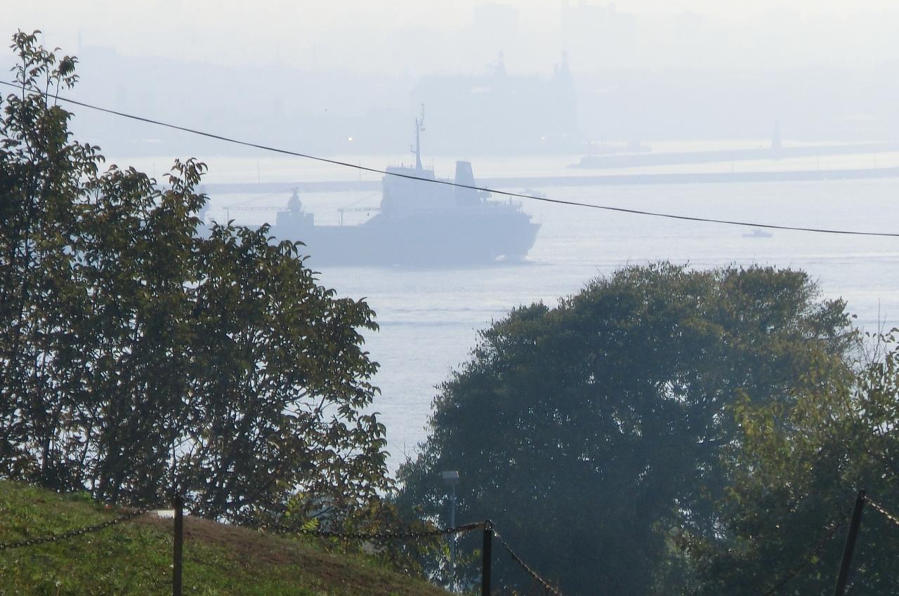 ボスポラス海峡を走る大型船。