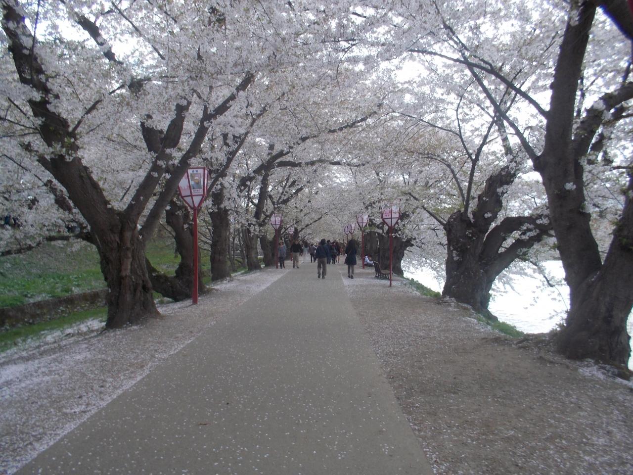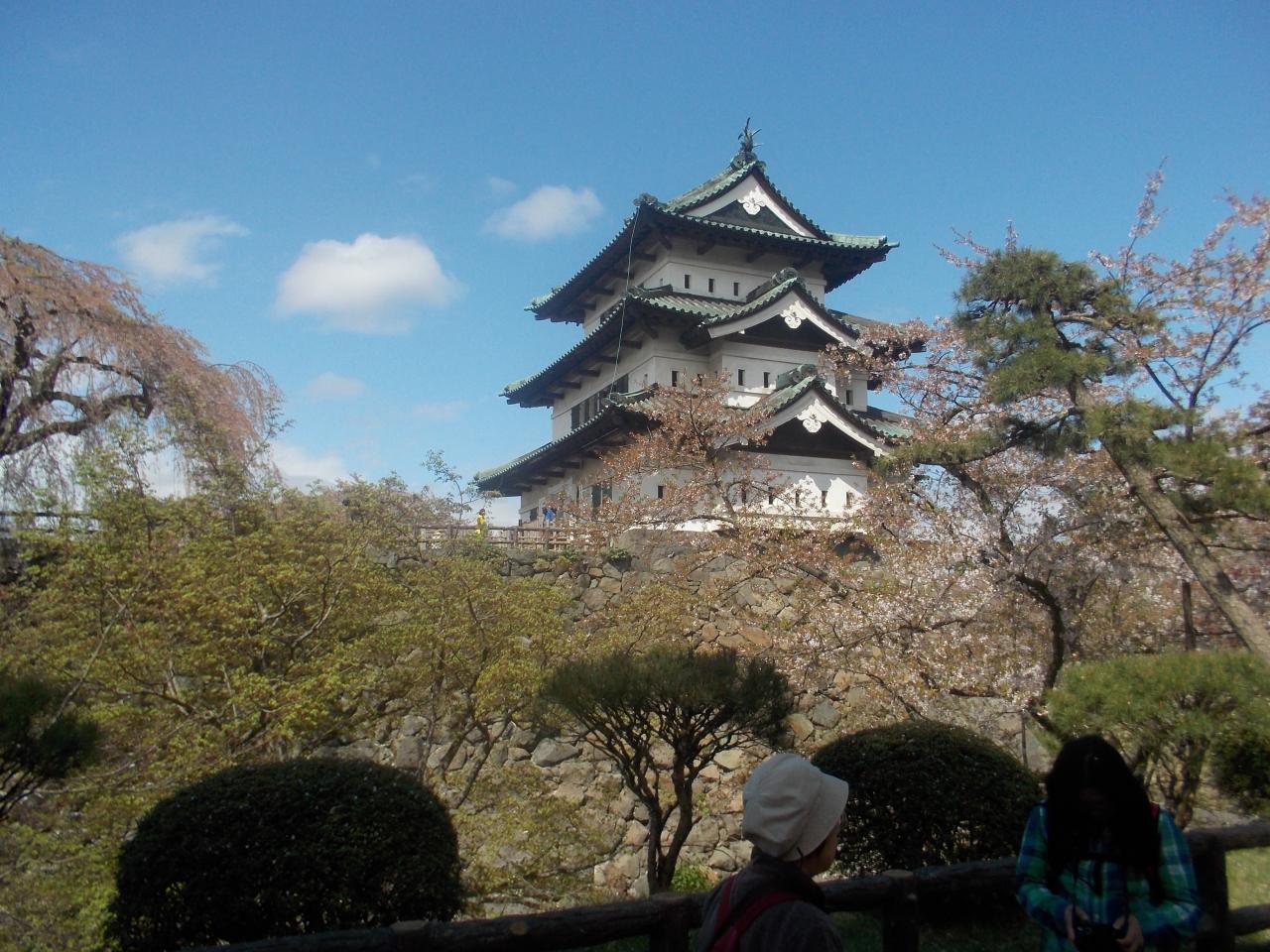 ① 前回の続きで、盛岡から午前の高速バスで、弘前に来ました。 弘前には正午前に着き、ヨーカドーのレストランで昼食を取り、100円循環バスで、弘前公園に行きました。 予想していたより人では少なくて、それは桜が散り始めた為だと分かりましたが、それでも多くの観光客で込み合っていました。 そして pp温泉に行き、ビックリドンキーで夕食を取り、弘前公園の夜桜を見てホテルには8時近くには帰りました。