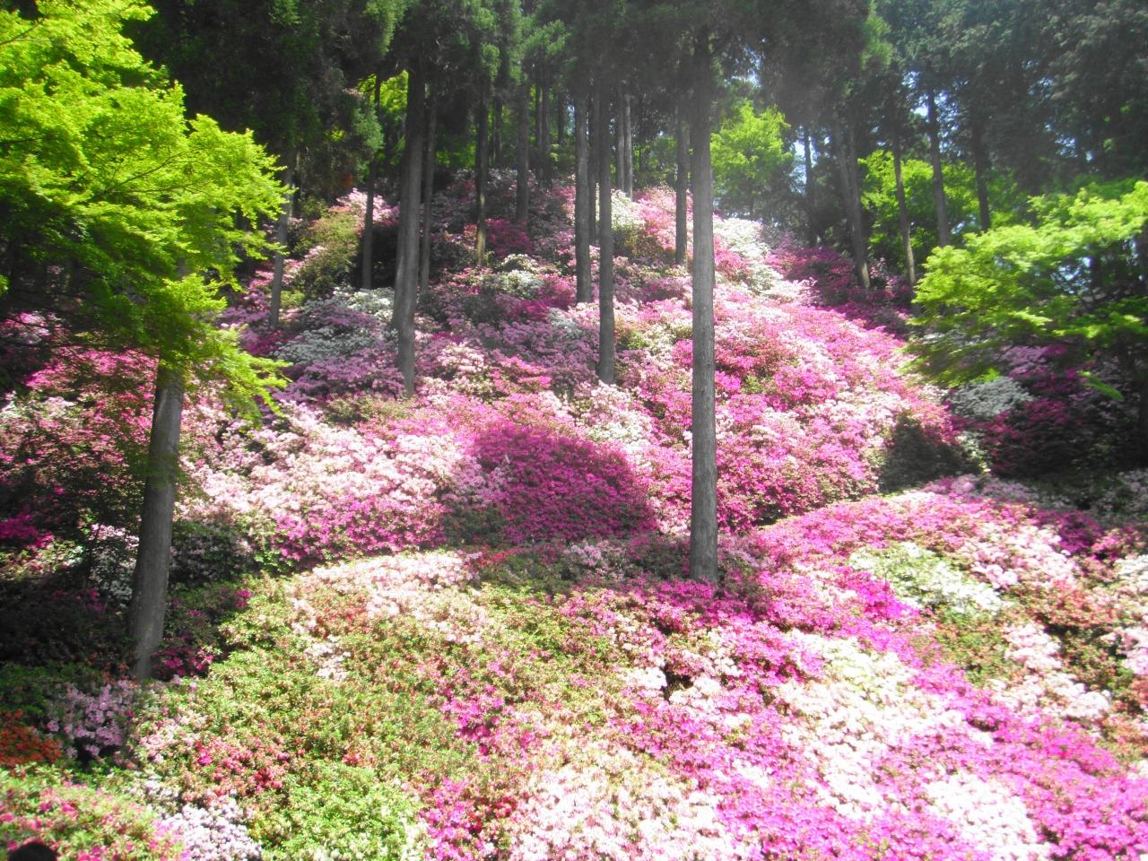 斜面に、つつじが一目一万本「うわ〜綺麗」と