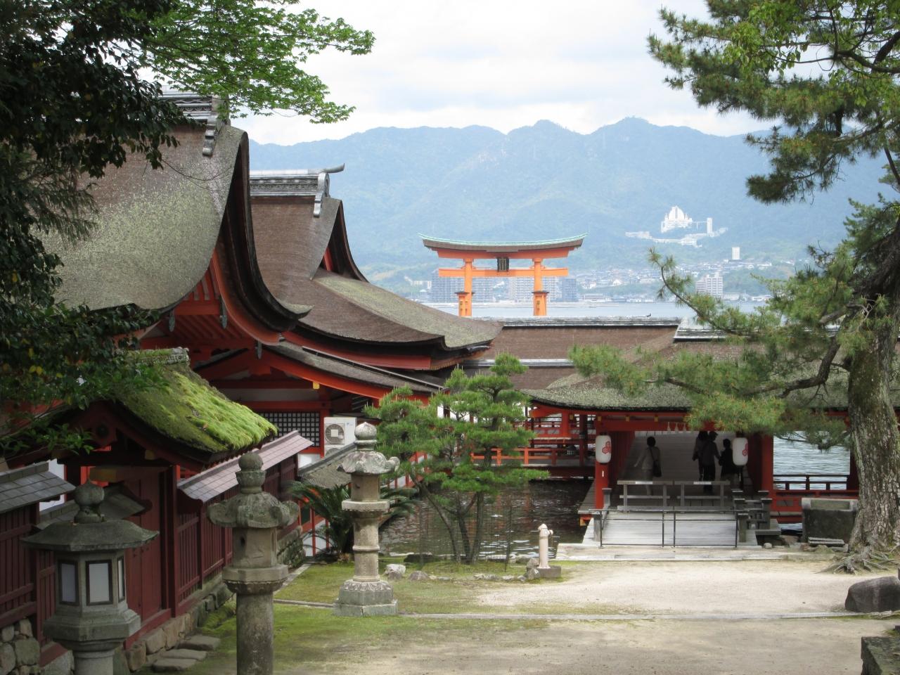 宮島の厳島神社、広島市内の広島平和記念公園。