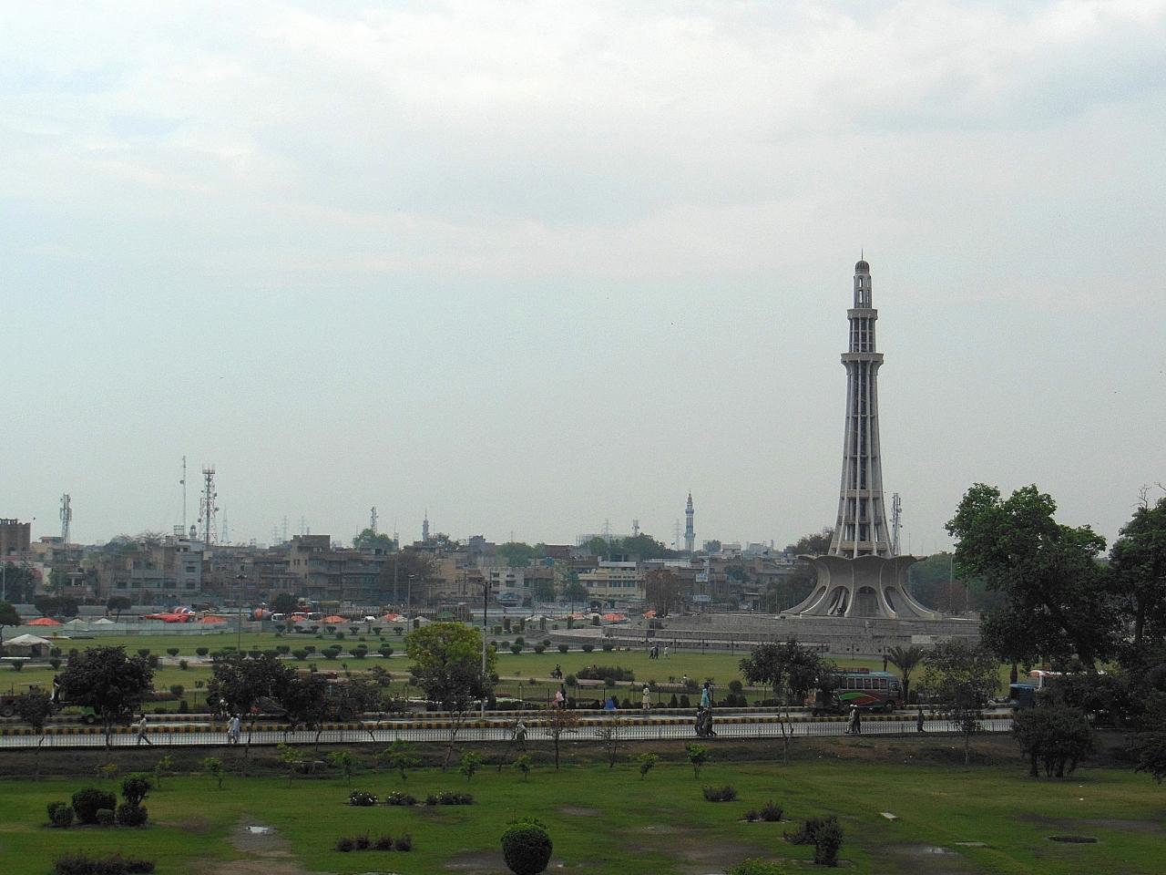 写真左手の塔はミナレ・パキスタン。足元には、1940年のラホール決議(パキスタンの分離を認めた決議)の碑文が刻まれているそうです。 -