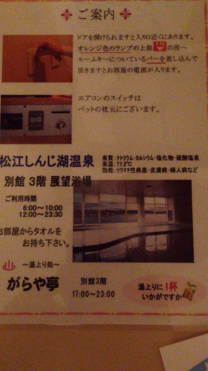 ホテルは松江宍道湖温泉があり、入ってきました。そこそこ広くて気持ちよかった
