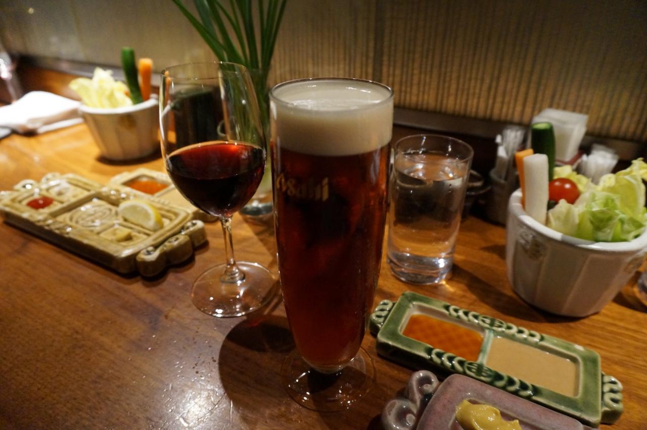 串揚げ屋でもワインがあったので、早速1杯。さっき、もう飲んじゃってるけどね。