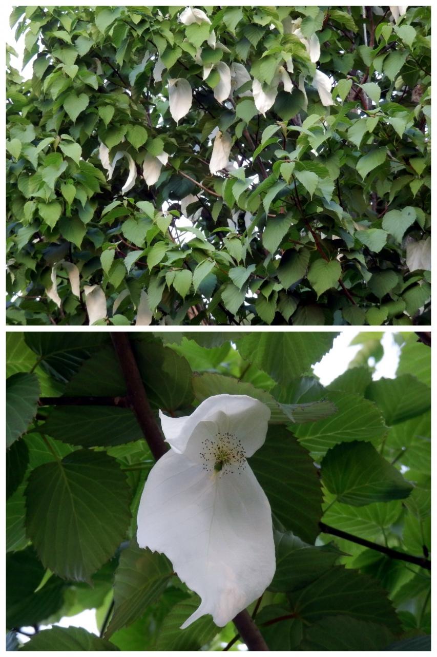 中国の四川省・雲南省が原産の「ハンカチの木」・・・花についた白い大きな2枚の苞葉が垂れ下がり、ハンカチみたい。