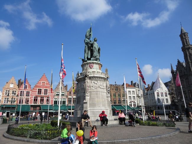 広場の中心には、ブルージュの英雄ヤン・ブレーデルとピーテル・デ・コーニンクの像があります。14世紀、フランスの圧政に対して立ち上がった中心人物だったようです。