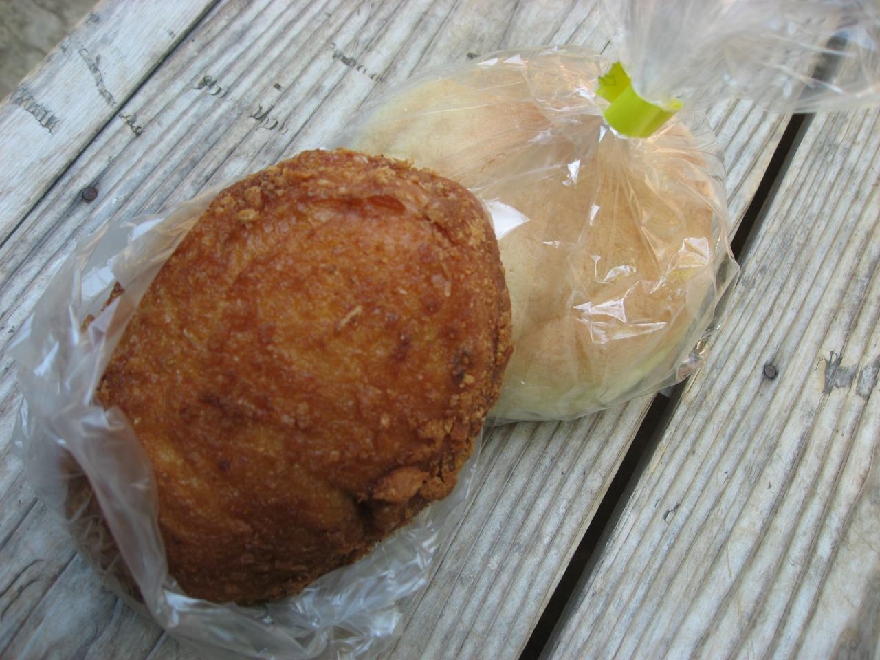 ベンチがあったので、ここで買っていたカレーパンを食べました。