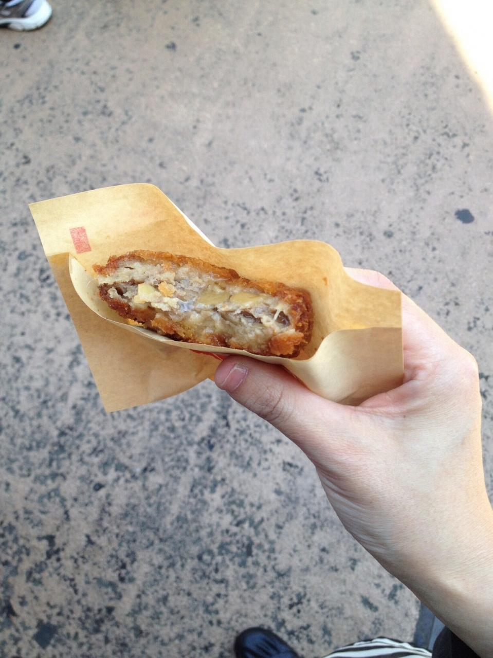 甘いメンチで、肉汁たっぷりで美味しかったです。 -