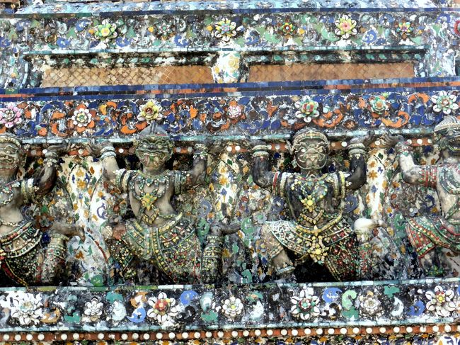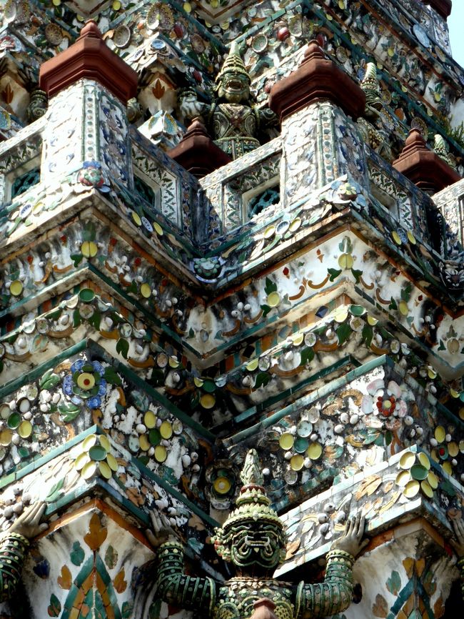 訪れることが?出来なかった王宮の建物は遙かに豪華だそうだが、バンコク仏教芸術の洗礼としては、ワット・アルンの様相は十分なイメージを与えてくれた。