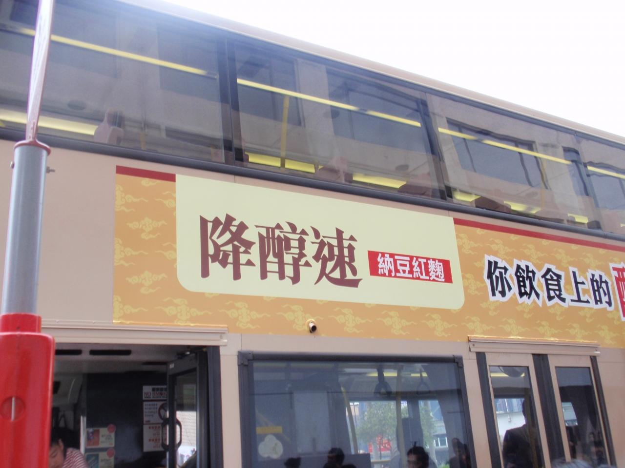 二階建てバスのラッピング広告. 今、香港では納豆が流行っているみたい.