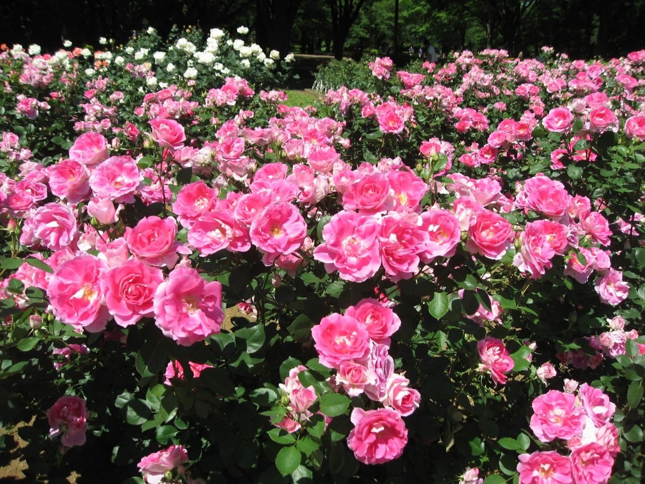 代々木公園にはバラ花壇が2箇所あります。近い方から見ました。公園内にあり無料です。この日はちょうど代々木公園でタイフェスがあり、出演者らしい人たちが会場に向かっているようでした。