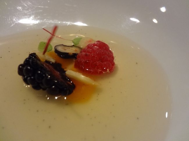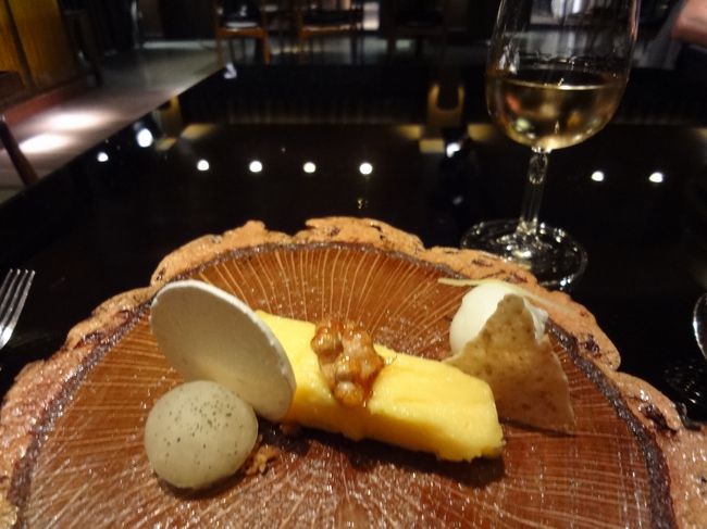 このレストランは現代風なコース料理が2種類、お腹のキャパを考えて安い方の44EUROのコース、お料理に合わせたグラスワイン5種類を付けて+19EUROになります。