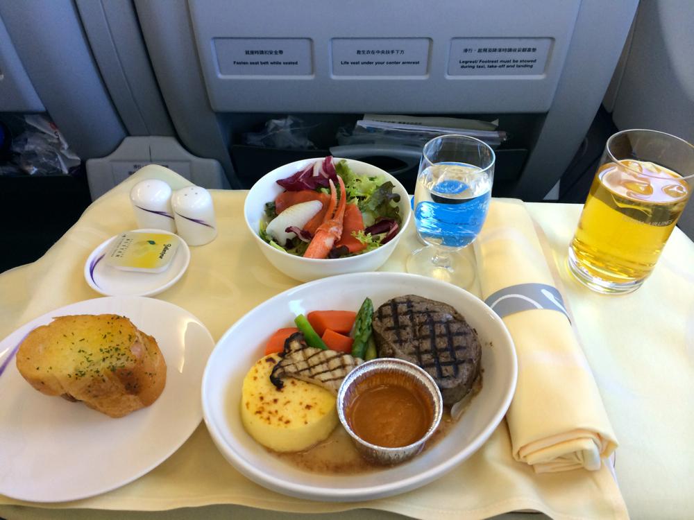 ただ、その時に、チャイナエアラインがビジネスのキャンペーンをする+オンラインでチケットを買うと、もれなく食事券がもらえるキャンペーンもやってる事が判明。で、ビジネスの金額-食事券の金額(=実質負担)が6万円代だったので、
